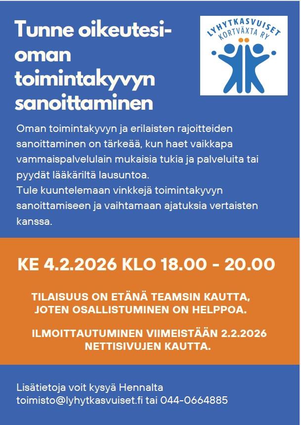 toimisto@lyhytkasvuiset.fi tai 044-0664885